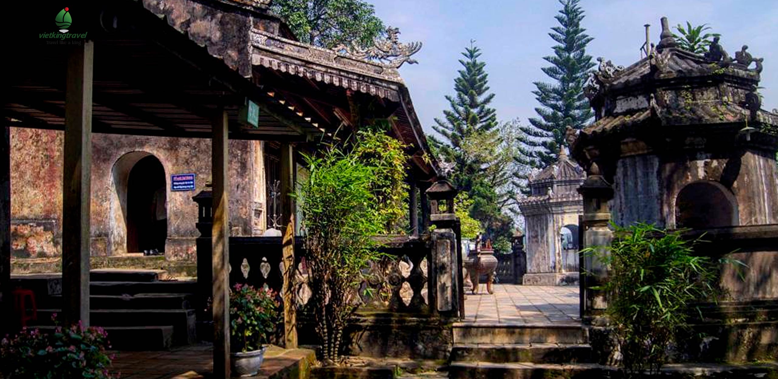 Hon Chen Temple is situated on a lovely slope of Ngoc Tran Mountain, 10km upstream from Hue Centre. The name “Ngoc Tran” means Pearl Bowl, originating from the bowl-shape of the mountain. That also gives the temple its name: Hon Chen.